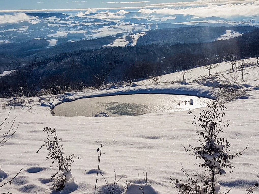 Etang et vallon sous la neige