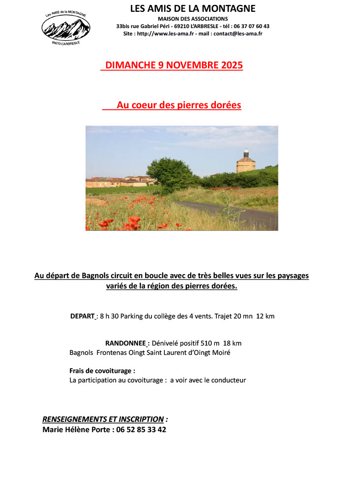 Fiche sortie du DIMANCHE 9-11-2025