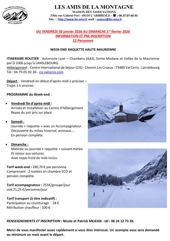 Fiche WEEK-END Raquettes du 30-01/1er-02-2026 |